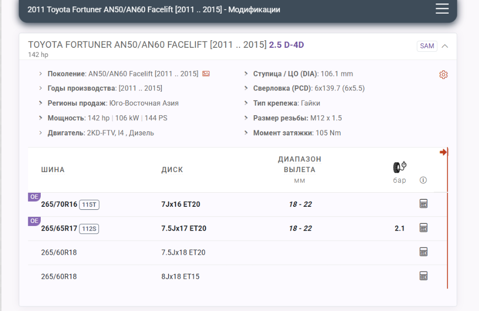 Узнайте, какой размер колёс подходит на вашу машину. Найти эту информацию можно в руководстве по эксплуатации автомобиля или использовать специальные сервисы. Например, на «РазмерКолес.ру» для Toyota Fortuner 2011 года подходят 265/70R16, 265/65R17, 265/60R18, 265/60R18. Иногда достаточно выбрать средний размер, так как чем больше диаметр, тем выше цена за комплект.