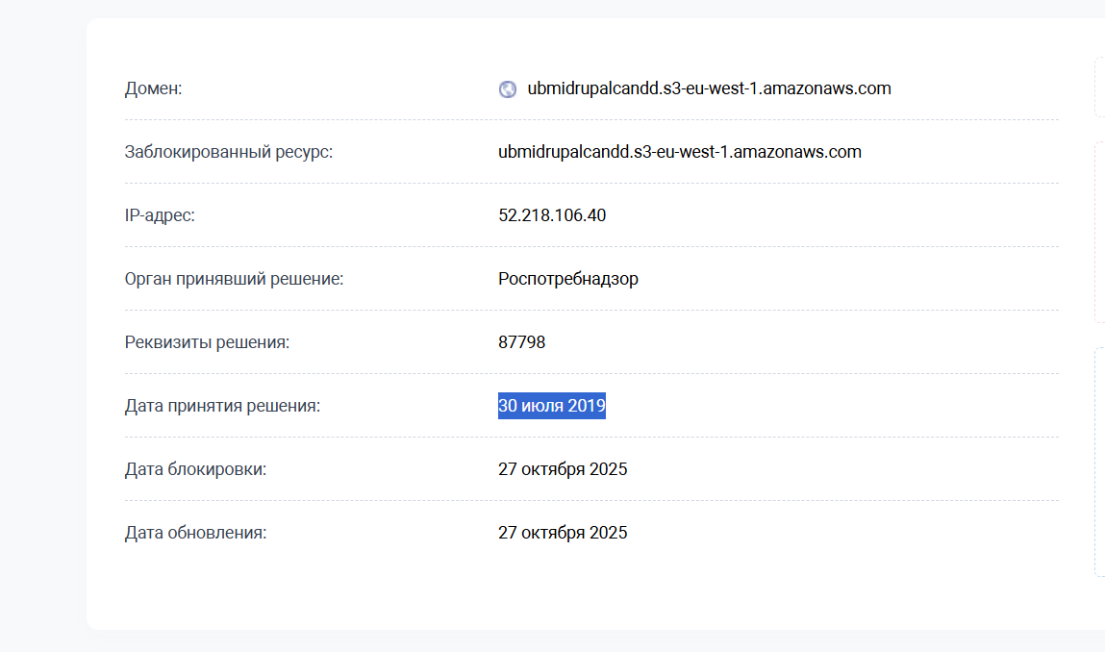 Однако факты говорят об обратном. На самом деле Роскомнадзор не заблокировал полностью все сервисы AWS. Блокировка от 27 октября — это требование, которое РКН внесли в 2019 году. Сейчас заблокировали только один конкретный адрес Amazon, в котором находится открытое файловое хранилище — изображения, PDF-файлы и рекламные материалы. Этот ресурс не используется для игр и не обеспечивает работу сервисов. Никакие другие адреса Amazon Роскомнадзор не блокировал.