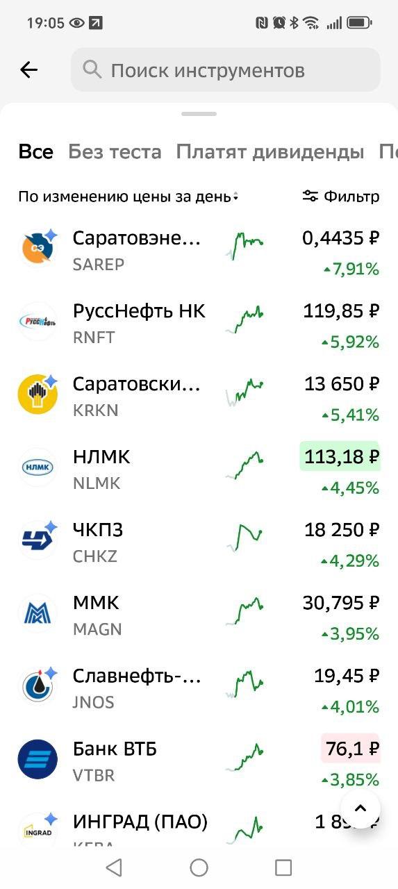 - «Саратовский НПЗ» (+5,41%).