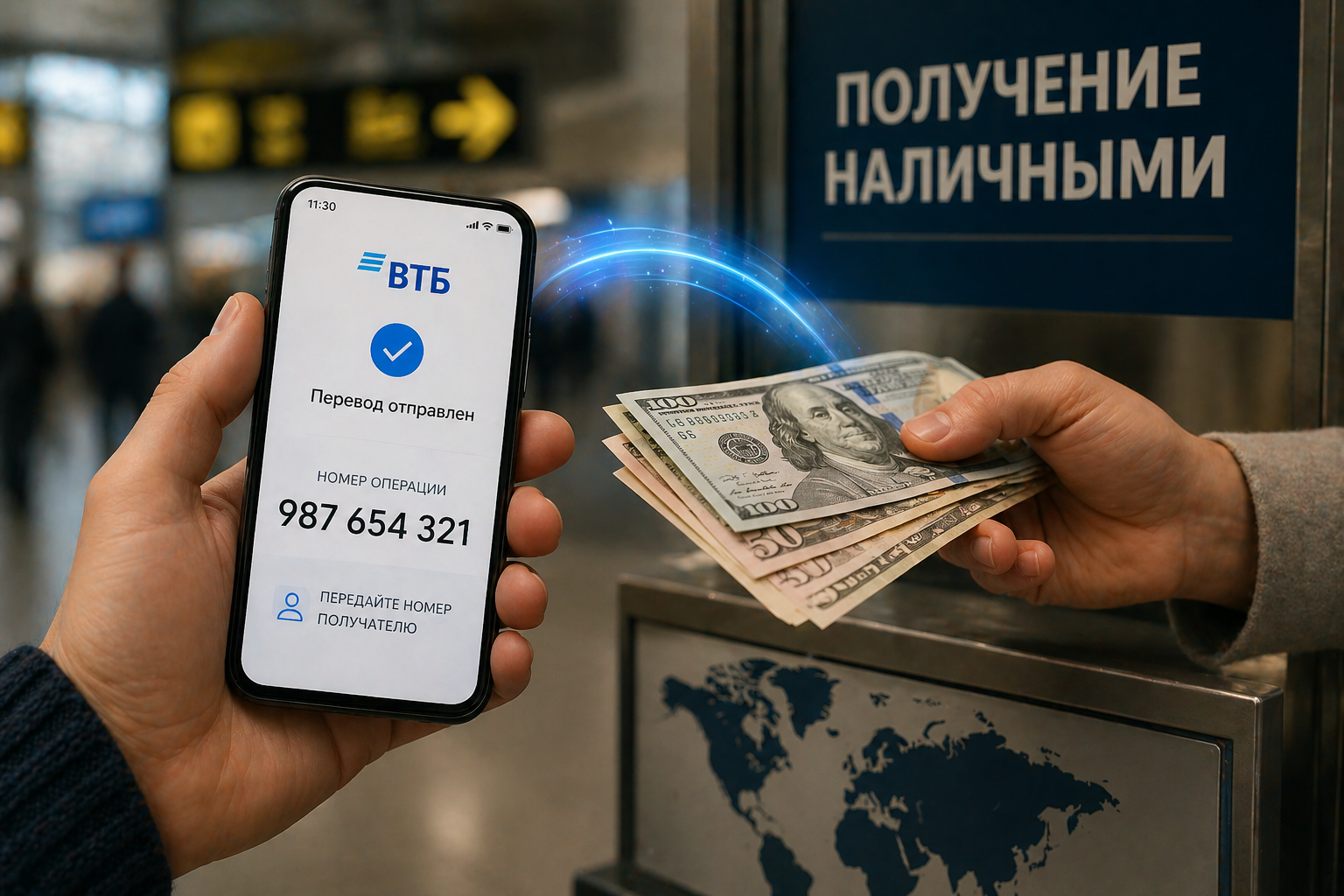 Речь идёт о переводах через приложение «ВТБ Онлайн». Деньги можно отправить человеку без карты и банковского счёта — он получает их наличными.