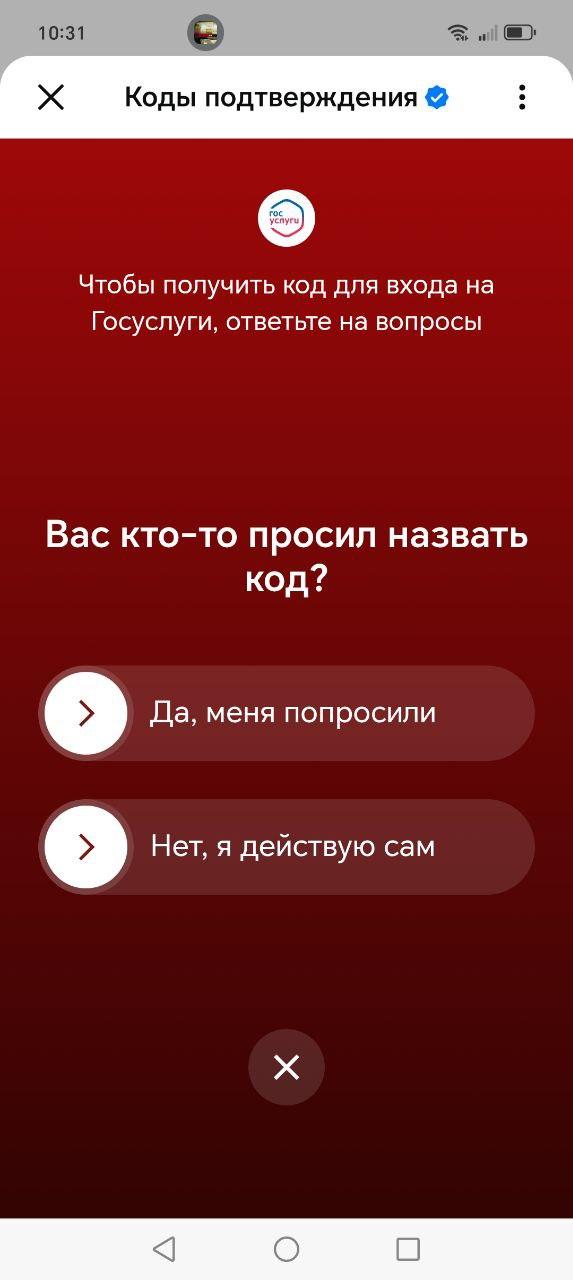 - Будьте внимательны, когда открываете код в мессенджере. Дело в том, что при открытии кода вас попросят выбрать один из двух ответов на вопрос «Вас кто-то просил назвать код». Если выбрать неверный вариант, а именно «Да, меня попросили», то аккаунт на «Госуслугах» будет заблокирован на 72 часа. Автор прошёл через это, не повторяйте её ошибку.